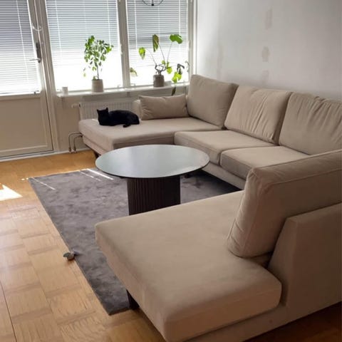 Soffan är väldigt stor och rymlig – perfekt för dig som vill ha gott om plats och hög komfort. Den är också riktigt bekväm att sitta eller ligga i, en favorit i hemmet!