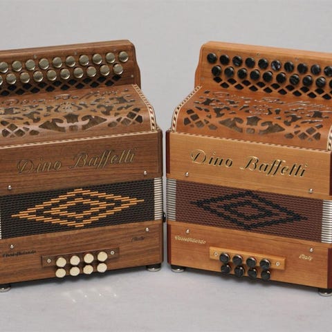 I diskanten finns en registeromställare så man kan växla mellan 2-körig violin (rakstämd på detta spel) och 3-körig musette (som har en liten tremolo). I basen en registeromställare så man kan lyfta bort tersen och därmed spela i både dur och moll.