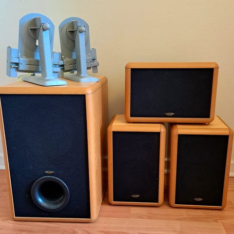 En liten repa på ovansidan av högtalarna men de är inget som påverkar ljudet från dom.