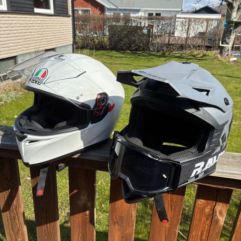 HJC vit hjälm och Airoh mattsvart crosshjälm