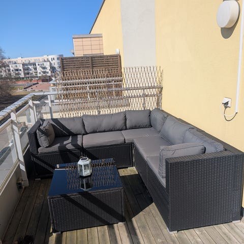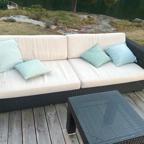Nypris cane-line ca 100.000 kr. Båda sofforna och tillhörande bordet säljes för 20.000 kr.