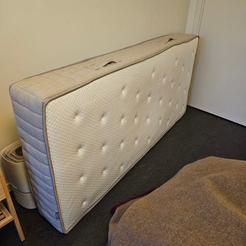 Pocketresårmadrass från IKEA av modell Vatneström, fast. Använd i drygt ett år med bäddmadrass ovanpå. Säljer då den nu visat sig vara för hård för mig. Skön madrass.