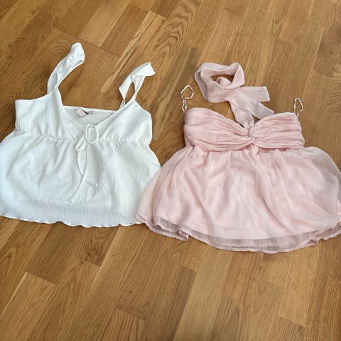 Off shoulder ribbad topp i ljusrosa. Toppen har XS/S i storleken, men den passar upp till L.