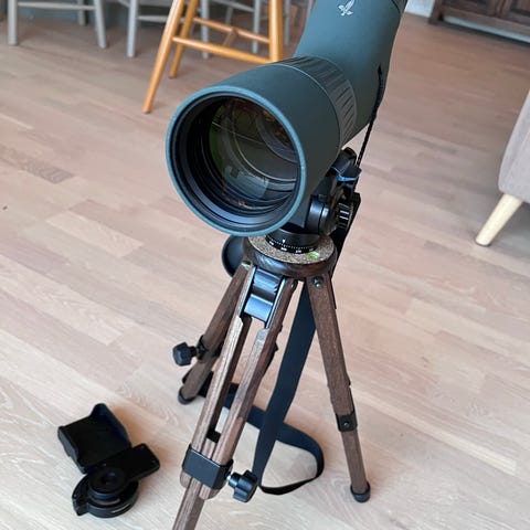 Stativ SLIK MASTER 165 x 60cm i utsläppt läge. Stativet lämpar sig för exempelvis ett teleskop för fågelskådning eller kamera.