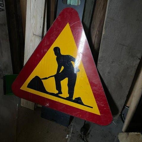 Texten är handstencilerad på gammalt sätt vilket gör att den "står ut" (reliefyta) från skylten och ger en vacker skylt med mycket känsla (ej att förväxla med billigare, "platta" screentryckta emaljskyltar).