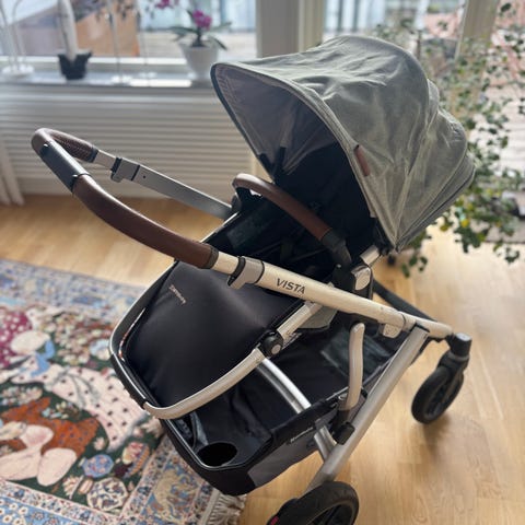 ✔️ inbyggt regnskydd, solskydd och myggnät
