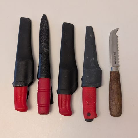 Lite olika Mora knivar, helt vanligt arbets knivar och 2st file knivar "Vapen" Lär vara över 18 år för att få köpa