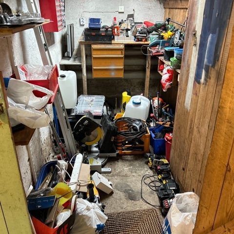 Skruvdragare B&D litiumbatteri campat,Vinkelmätare,Diamantbryne pennmodell 2 st,Klädskåp 550x1900 3dörrar med lås sluttande tak,Bollpump,Bil DVRkamera 2st,KamasaTools Hylsnyckelsats,Rennsteg skruvutdragarsats 5 delar,Hultafors måttstock 1m,Luftverktygsväska 7 delar,Fukt o batterimätare MDT-301,Batteridriven grästrimmer Selekta,Dremel Ferm FCT-1603F,Dremel modell 742,Slangupprullare till tryckluft Hard Head 12bar,Satellitsökare König,Hörselkåpor 2st,Pappershållare,Arbetslampa med stativ halogen,Handdammsugare till bil 12v ,Vattenkokare 1 l till bil 2st,Klinker/kakelborrsats 6delar,Blindnitar 100pk,Cirkelsåg Bruksbo ,Vinkelhake 30 cm metall,Sågsvärd,Bultsax 450 mm,Sladdlampa E27,Batteriladdare CTEK GO,Fälgkors,Hopfällbar arbetsbänk 2st,Kombinationssteg med plattform,Förvaringshylla metall,Kabelskalare,Glasskärare,Koniskt stegborr 6-22mm,Mutterspräckare 2st,sax,Tum stock 2m 3st,Gradverktyg 2st,Bultsax 14tum,Gängfilar,Bänk o bandslipmaskin Biltema,Montörsvagn,Bilramp 2st,Sågkedjeolja 1 lit,Bräckjärn kofot 2st,Domkraft 2ton,Fettspruta 2st,Tratt 6st,Tratt,Demonteringsverktyg,Digital multimeter Caltek o annan 2st,Hävertpump 2l l/min 2st,Gängverktygssats,Tillbehörssats för kompressor,Ångtvätt 1050w,Luftpåfyllare 2st,Varmluftspistol,Pallbock 2000kg 2st,Skjutmått 2st (1st Biltema 1st Mito Toyo) 0-150mm,Vinkelslip AG 115C,Momentnyckel 4-24Nm,Arbetspall med hjul,Tillbehörssats till multiverktyg ,Tryckluftsslang,Oljefilteravdragar, Inspektionsspegel,Magasinskärra200kg,Saxdomkraft,Jeepdunk 20L,Fuktmätare EM4808,Vattenavskiljare 2st,Snabbkoppling 4st,Renblåsningspistol 4st,Bokstavs/sifferstanser,Avdragare 0-150mm,Sågkedjeolja 4l,Oljekanna 2st,Lödset modell SG109-100,Mikrometer 25-50 mm ,Limpistol Glugan/Silks 400w,Lödkolvställ,Pincett 4 p,Tennsug 20cm,Lödstativ,Slipmaskin,Spillplåt rostfri 4st,Slagborrmaskin ,Sticksåg 55w,Sågkedja 14in,Planslip Bruksbo,Mutternitsats,Syraprovare 2st,Arbetslampa ,Presenning 3st,Startkablar 10mm,Bogserlina elastisk 2000kg 2st,Glykolprovare,Slangnippel,Kompressor Quin Air Motor 3 hp 2,2 kw,Hårdmetallskär,Gängtappshållare,Polermaskin 2 huvud Bruksbo d95mmx2 3200min,Tratt med förlängare,Motorsåg Meec 11000vpm 1,2 kw,Arbetsbock hopfällbar 2st,Seadog line battery test switch,Mekanisk Indikatorklocka 0-10mm,Multimeter uni-t ut13B,Dymo labelpoint 100,Spetspassare,Kompressorolja 68 1l,Skruvutdrag 5st