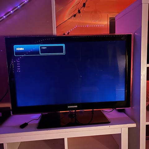 En Samsung tv som funkar utmärkt förutom att jag tappat bort strömkabeln, modellen heter UE32J4005AKXXE och de är en 32 tums.