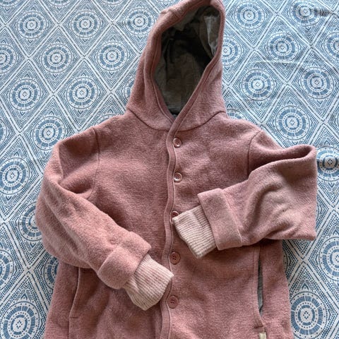 DILLING jacka, 100% ull ullfrotté jacka/tröja (gammelrosa) stl.110/116. Superskön att ha en sval sommarkväll och passar lika bra som lager två på vintern! Mycket gott skick