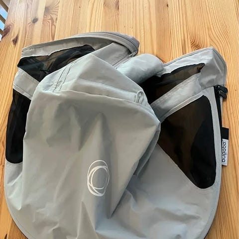 Helt nya Buggabo Donkey suffletter, solskydd i rosa, har 2 st. 1 helt nytt regnskydd till vagnen. Sufflett, Solskydd 750 kr, regnskydd 500 kr.