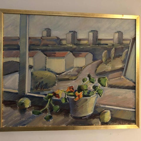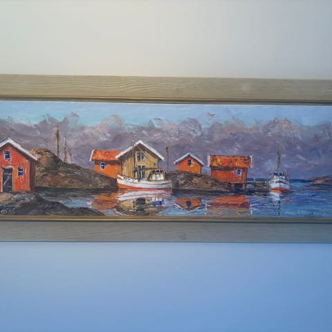 110 x 85 cm. Signerad Gard. Två mindre lagade skador på duken (se bilder). På avstånd är skadorna svåra att urskilja. Tavlan är i övrigt väldigt fin.