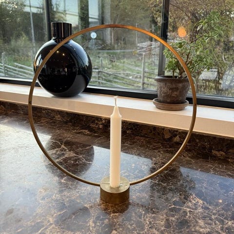 Ljusstaken Gloria Small i mässing från märket Klong. Den är i nyskick och knappt använd. Kostar 1 375 kr i butik.