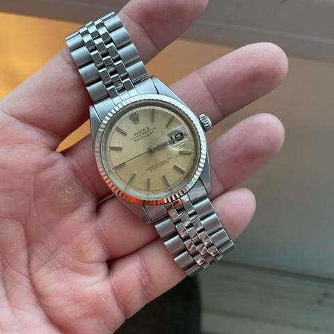 En sällsynt, vintage Rolex Skyrocket som bär på en hel del historia, perfekt för samlaren. Manuellt urverk med en gångreserv på 40 timmar. Fungerar och håller tiden mycket väl, trots sina 83 år.