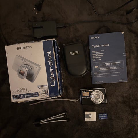 Sony digitalkamera Cyber-schot 5,0 mega Pixel mycket sparsamt använd bara någon gång, instruktionsbok, 2 laddare batterier på 2100 w kabel att koppla till dator eller surfplatta samt 2 st memorera stick på 16MB inkl, väska.