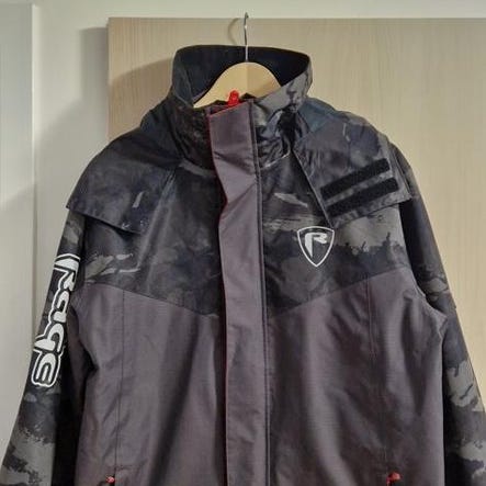 Fast huva med snörning. Generös skärning ger maximal rörelsefrihet. Dold knäppning, dubbelknäppt stormklaff och PU-förstärkta manschetter. Bomullsinsida och väldigt slitstarkt PVC material.
