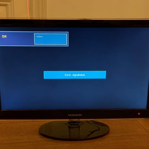 24 tum Monitor med fjärrkontroll, stereo-sladd och D-sub kabel. den har en kontrollpanel även vid sidan om av skärmen.