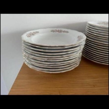 Totalt 22 delar. Några tallrikar har mindre nagg, men överlag i fint bruksskick.