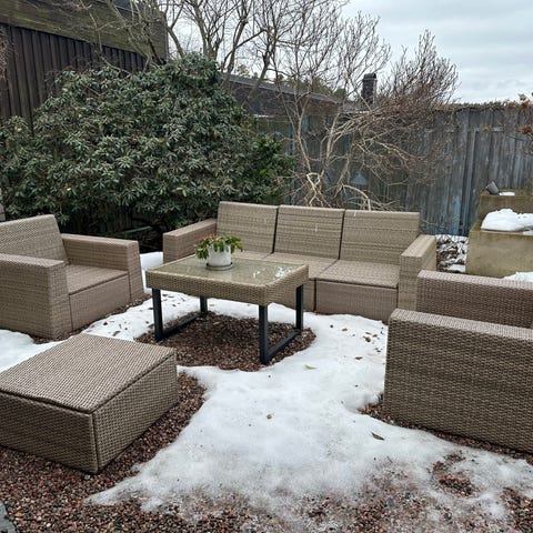 Säljer min lounge soffgrupp köpt från bauhaus för förra sommaren, mycket fint skick, endast dynor som blivit solblekta som går att byta.