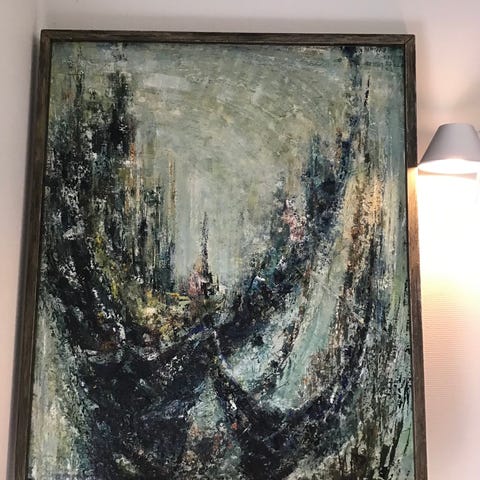 Färgstark modern abstrakt målning, akryl på duk 50×40 cm