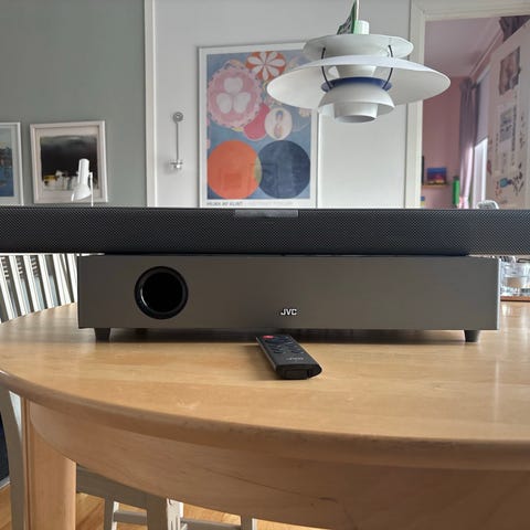 Samsung soundbar med tillhörande subwoofer i svart utförande. Systemet består av en ljudlimpa med frontmonterade högtalare, en fristående aktiv subwoofer samt fjärrkontroll. Lämpligt för användning tillsammans med TV eller annan ljudkälla för att få förbättrat stereoljud och basåtergivning i vardagsrum eller liknande miljöer.