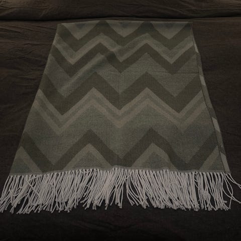 Stor svart och vit filt med fransar. I fint skick. Nytvättad.