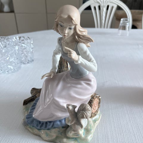 En jättefin tengra porslins figurin från spanien , föreställande ett par på en bänk . höjd c.a 17 cm och c.a 14 cm bred .