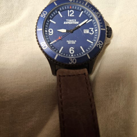 Timex klocka med bakgrund belysning perfekt för kunna se tiden på mörkt tillfälle. Trycker mjuk på kronan lyser ur tavlan.