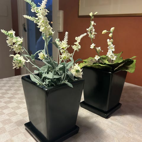 Jag säljer 6 olika sorters blommor och gröna växter.
