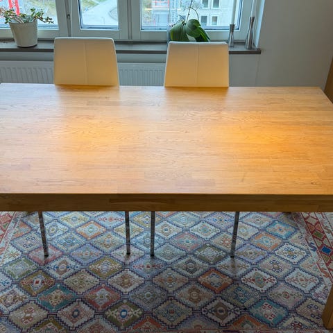 Gediget matbord i ek från R.O.O.M 230 x 93 och 76 cm högt. Stora modellen plats för 8-10 personer.