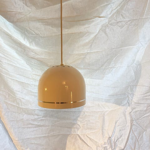 Vit cylindrisk takmonterad lampa med kabelanslutning, växtbelysning från IKEA, inköpt 1983.
