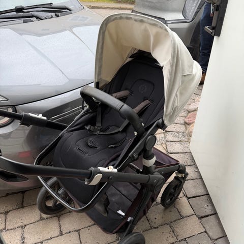 Säljer en svart begagnad Emmaljunga Viking barnvagn med endast sittdel.