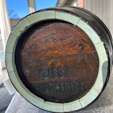 Grön sparbössa från Sparbanken i Lund. Färgen är grön 50-tals-kulör. Tyvärr finns ingen nyckel till den.