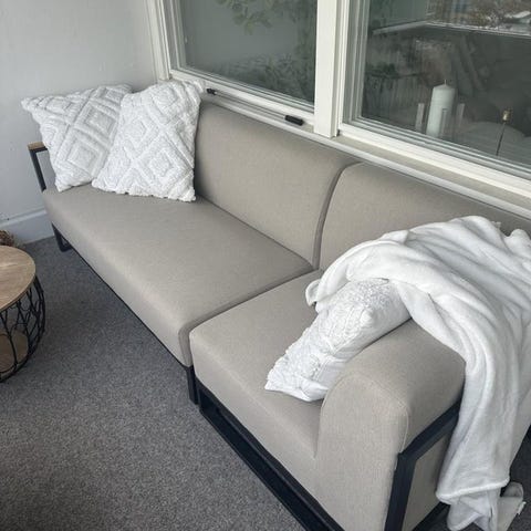 En jättefin ute soffa för balkongen eller terrassen. Trädgårdssoffa är från Wohn zimmer.