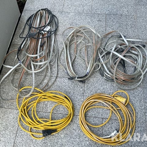Säljer ut förlängningssladdar som kommer i olika längde, allt från 8, 10, 15 och 20 meter. friska och inget fel på dem! säljer ut för har ingen användning av dem längre.