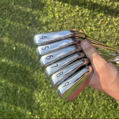 Säljer ett använt men fint Titleist järnset bestående av 4-P där 4&5:an är den förlåtande 716-T-MB och 6-P är klassiska 716 MB (blad). Huvudena är i ett fint skick utan fula märken eller skador, men naturligtvis syns det att de har spelats med klubborna! Det sitter True Temper XP95 S300 (Stiff) stålskaft i klubborna (lätta, snälla och hög-launchande skaft) och de spelas +0.25” längre än standard. Loft och Lie är standard! Sitter Golf Pride Tour Velvet midsize på (som är spelbara men de bör snart bytas) skaften. Jag kan montera nya grepp mot en kostnad enligt ök - fråga mig vad vi kan lösa isåfall!
