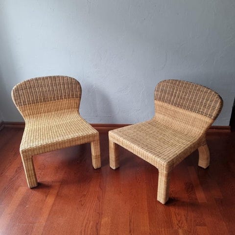 3 st Fina rottingfåtöljer med vit dyna (2st syns i bild) . En är helt ny ( ouppackad) och de andra två sparsamt använda. Obs! den ena fåtöljen kräver en ny skruv vid ryggstödet, se bild med vit snörning. 2000kr för alla tre.