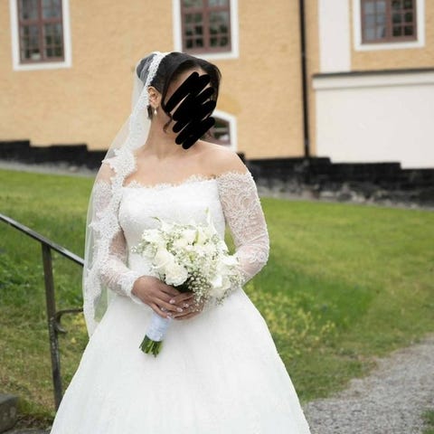 Välgjord brudklänning i hög kvalitet Forever Yours från Bröllopsbutiken. Vacker skimrande brodyr på livet och släpet. Avtagbar halterneck band. Tyll-underkjol ger vacker vidd. Handtag insytt i släpet för att kunna hålla det uppe vid dans.