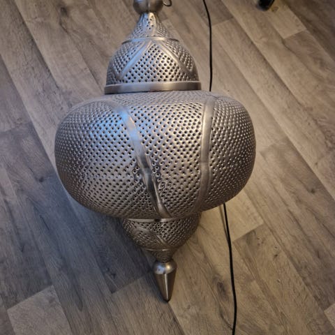 Stor orientalisk taklampa, ca 60 cm bred och ca 80 cm hög. Köpt på DiS i Stockholm för ett antal år sedan, nypris ca 9000 kr. Endast avhämtning. Kan levereras till Stockholm enligt överenskommelse.