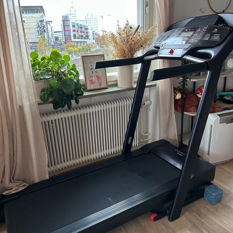 Ingår: Gåband, fjärrkontroll, skyddsmatta, manual