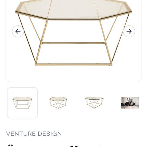 Säljer fint soffbord i 3 delar, glas med guldfärgad ram. Kan stå ihop eller separat.