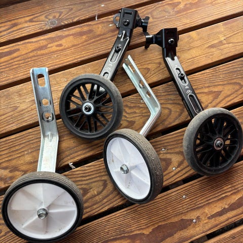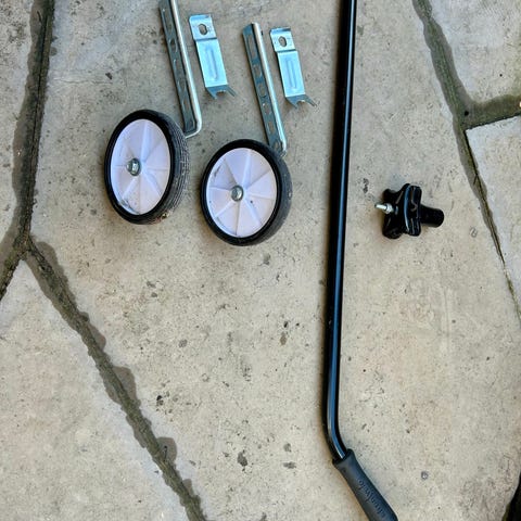 Stödhjul och stång för att lära barn cykla. För barn cykel storlek 12–20". Hämtas i Göteborg.