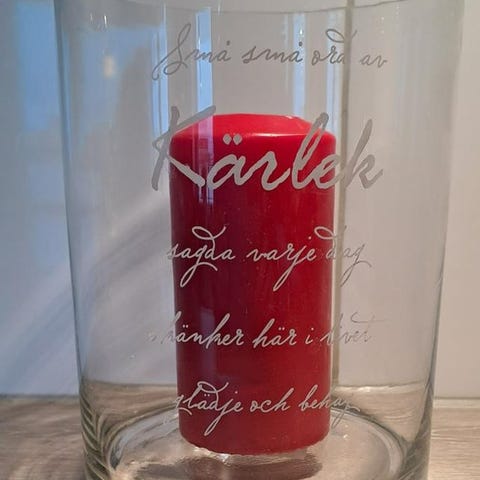 Frostat glas med svart metallhölje. Diameter 8 cm. Höjd 8.5