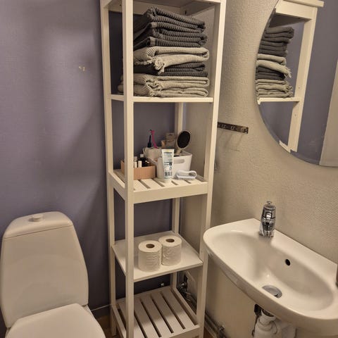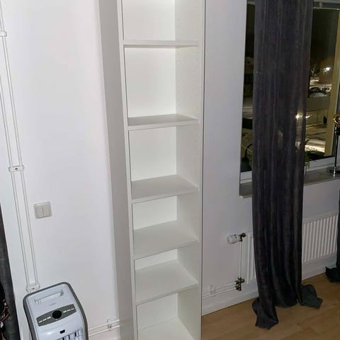 IKEA hylla i vit färg. Öppen förvaring med flera fack som kan användas till exempelvis badrum, tvättstuga eller andra rum där extra förvaringsutrymme behövs. Passar för förvaring av handdukar, textilier eller andra mindre föremål.
