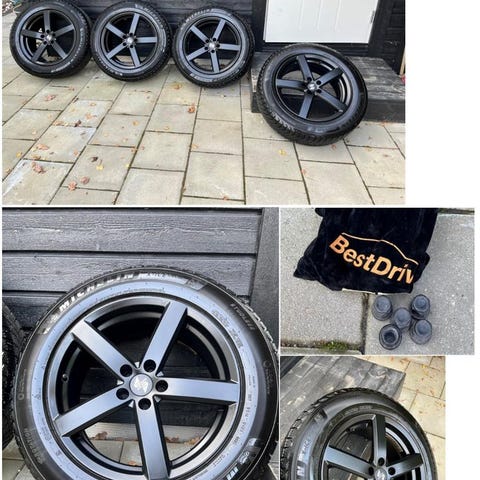 Fälgar och däck i fint skick. Finns några små märken på fälgarna, däcken är Hakkapeliitta R2 SUV dubbfria vinterdäck med ca 6mm mönster kvar på.