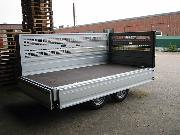 Fällbara fram, bak och sidlämmar. Hörnstolparna kan plockas bort.