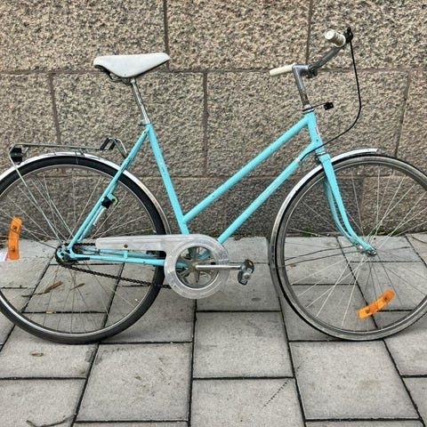 Mycket unik herrcykel från kvalitetsmärket Monark. Cykeln är utrustad med en unik trumbroms fram som går igenom styret och gaffeln samt en förvaringslåda och pump på pakethållaren. Cykeln fungerar utmärkt och är körklar!