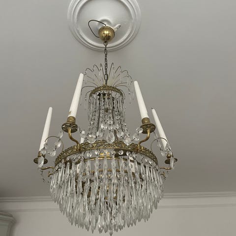 Min lampa är nedpackad klar för leverans, därav så är inte tex ljushållarna monterade på bilden när jag håller upp lampan utan det är bara för att illustrera diametern.