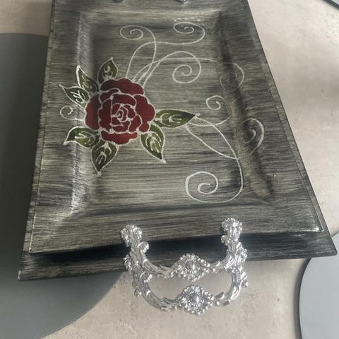 Serveringsbricka i rotting med glas & handmålat motiv