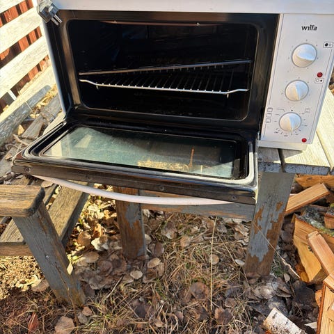 Miniugn i gott skick, 3 tillagningslägen och timer. 18 liter, bredd 46 cm, höjd 24.5 cm, djup 37 cm (invändigt 31 cm) rostfri stålgrill och 1 aluminiumplåt.